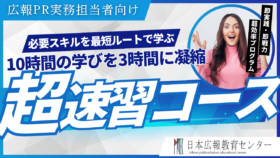 | カリキュラム | <カリキュラム> 第1講 広報の最大の武器「基本リリース」テクニックをとことん磨く講座 第2講 多段階リリース 第3講 広報はネタ勝負!ネタの創出方法を伝授 第4講 プロ広報マンのメディアコンタクト方法 |