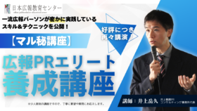 広報コンサルティングのプロ中のプロである井上岳久が豊富な広報コンサルティング実績からメディア露出の多い実績のある広報先進企業の共通スキルがあることを発見しました。そして、抽出し分析しまとめています。今回、この中でも特に重要な中核となる広報スキルを「10項目の実務スキル」としてわかりやすくまとめ体系化し本講座のみで特別に公開します。このスキルとテクニックを教え、身に付けるトレーニングをすることにより実践で活用しすぐに効果が発揮できるよう指導します。 <特 長>講座の5つのポイント